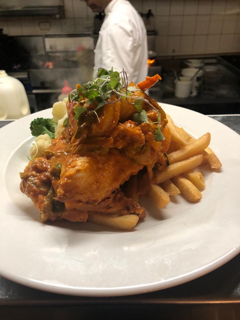 veal cooked with ceasars and a touch of curry in a cream and napoli sauceVeal
